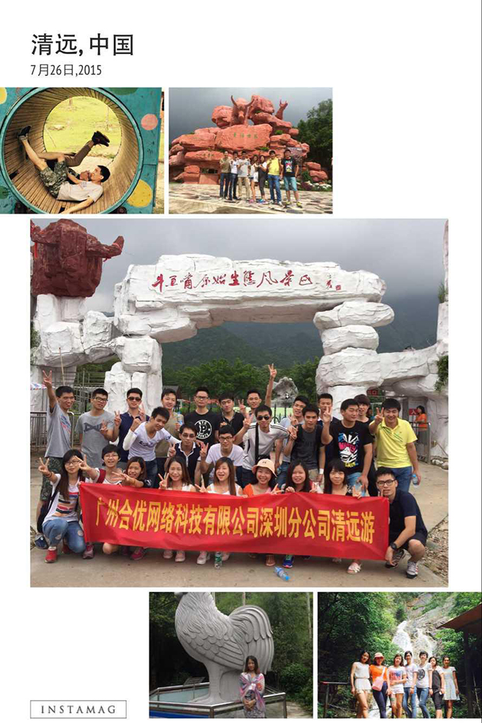 为了丰富员工的文化生活,进一步增进团队精神,促进各部门间的相互了解,提高深圳分公司A部的凝聚力和向心力,体现公司的人文气息,2015年7月25-26日,合优深圳分公司组织A部全体员工到清远进行两天一夜旅游。通过此次清远之旅,大家不仅感受了清远美不胜收的自然风光、享受了旅游的喜悦与轻松,同时也感受到公司的温暖和关怀。