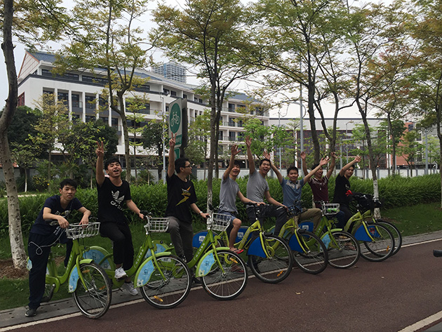 我们要进行踩单车比赛啦,输的人可是要请喝奶茶的哦!大家听到这个比赛规则都很自信的说“我肯定不会是最后一个!!”果然都是销售精英,永不服输的精神,赞~!在经理的一声令下比赛开始了,大家的单车仿佛都装上了翅膀飞快的前进着,比赛很快就有了分晓,当然谁输了肯定是要保密的嘛,不过奶茶挺好喝的\(≧▽≦)/~