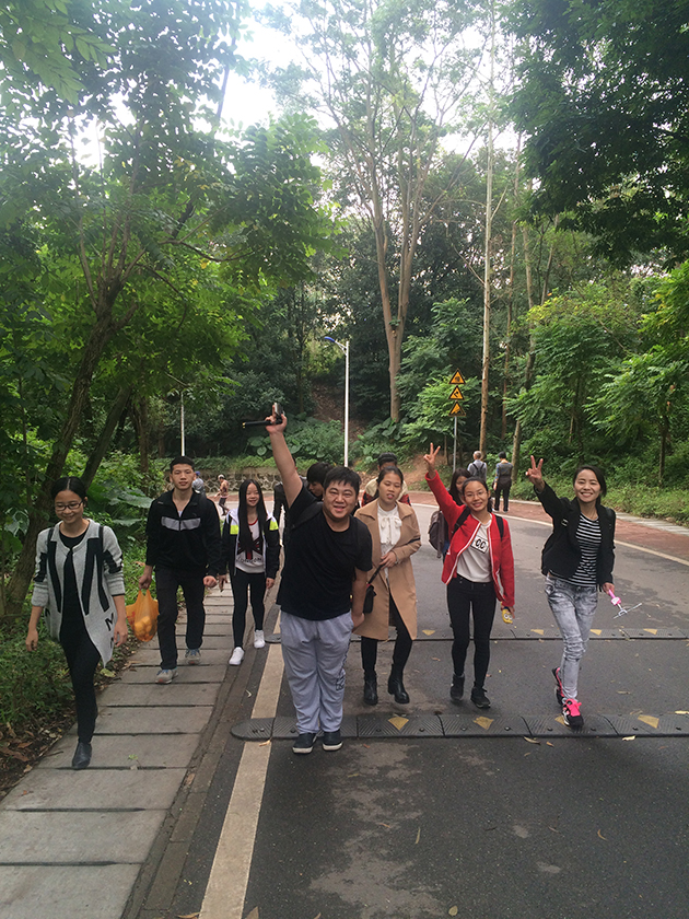 走到半山腰我们就开始玩游戏啦,六人七足游戏的规则是把先同事们分成两组,然后统一用一根绳子绑住右脚,这样先到达终点的一支队伍为之胜利。这个游戏充分的体现了同事之间的默契和协调性,最后到达的一队待会在烧烤的时候负责烧食物给我们吃的哦,谁输谁赢呢,让我们拭目以待吧~~!