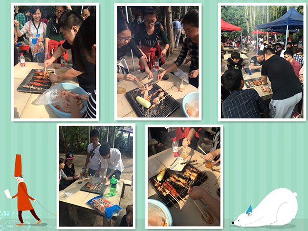 玩累了之后大家就开始准备进行烧烤了。烧烤可是今天的重头戏,有的吃大家都很用心的动手去烤食物,O(∩_∩)O哈哈~大家都是吃货呢!