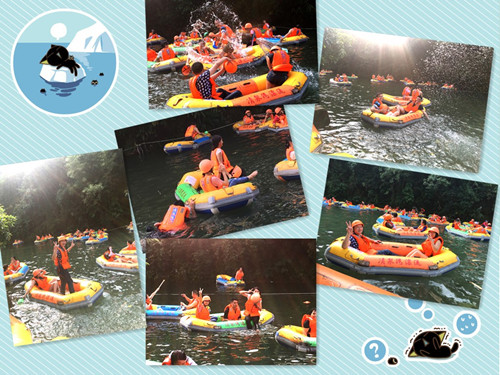 经过早上爬山探险,肚子饿得咕咕叫,在吃完丰盛的午餐过后,终于到了下午的漂流活动了,大家都迫不及待的下水,体验惊险刺激感觉。