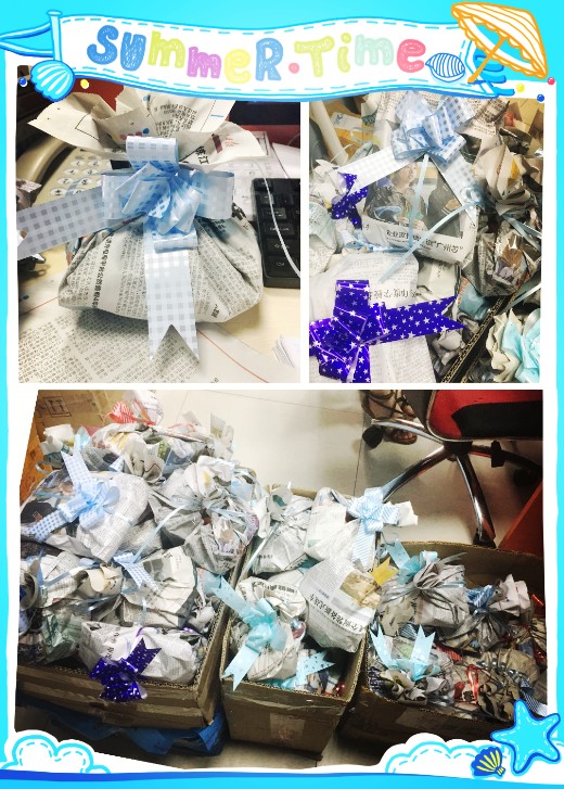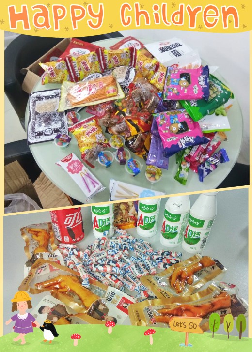 在儿童节来临之前,预先准备好当天所需要的物资,甚至还给零食进行了包装,让员工当天打开的时候会有种惊喜的感觉,琳琅满目的零食摆在眼前的时候,估计会有一种穿越到以前的感受吧。