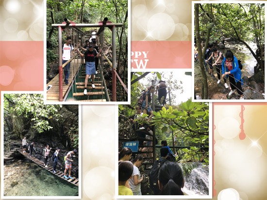因为受到台风的影响,早上时分天还在下着小雨,还以为天公不作美了,结果一路出发也没继续下大雨,反而太阳公公也出来陪着我们,让我们可以有个愉快的旅程。来到旅程的第一站千古溪,来探险原始未开发的山溪,在这美丽自然景色中让我们体会和领略到过浮桥、撑竹筏、坐滑索、爬软梯、攀铁索、走网桥、登岩嶂、领略无限的乐趣和刺激。ヾ(✿゚▽゚)ノ