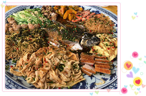 古劳水乡结束后就要去吃午餐咯,(σ゚∀゚)σ..:*☆哎哟不错哦~盘菜一上来就是一阵阵惊喜,满满的一个大盘装着各式各样的菜肴,荤素搭配得恰到好处,令人欲罢不能(>;ω・* )ノ