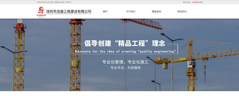 非常深圳市龙盛工程建设有限公司对合优公司的信任和支持,把企业的官网网站制作交给合优网站建设公司,合优定不负使命,发挥网站制作方面的优势,用“诚信,责任,团队,敬业”的服务宗旨和态度完成这次的合作。