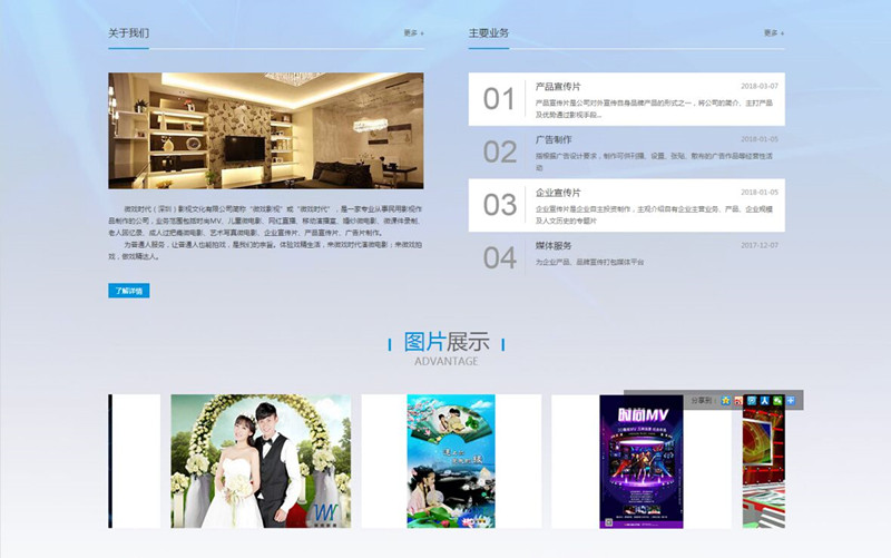 微戏时代(深圳)影视文化有限公司简称“微戏影视”或“微戏时代”,是一家专业从事民用影视作品制作的公司,业务范围包括时尚MV、儿童微电影、网红直播、移动演播室、婚纱微电影、微课件录制、老人回忆录、成人过把瘾微电影、艺术写真微电影、企业宣传片、产品宣传片、广告片制作。