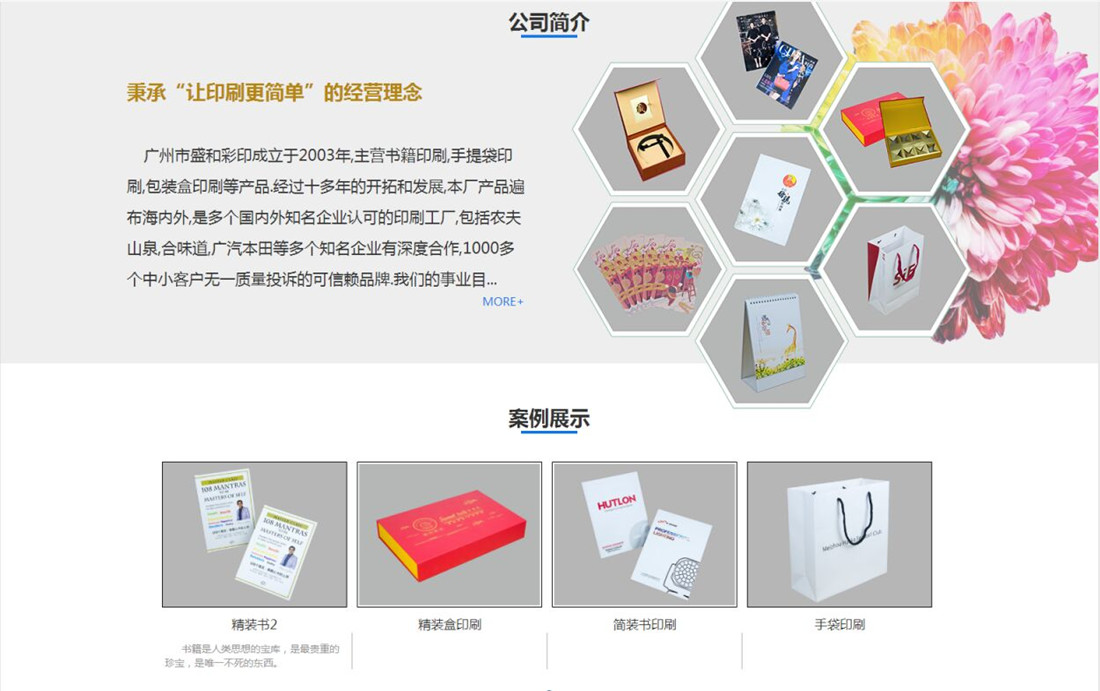 广州市盛和彩印纸品有限公司成立于2003年,主营书籍印刷,手提袋印刷,包装盒印刷等产品.经过十多年的开拓和发展,本厂产品遍布海内外,是多个国内外知名企业认可的印刷工厂,包括农夫山泉,合味道,广汽本田等多个知名企业有深度合作,1000多个中小客户无一质量投诉的可信赖品牌.我们的事业目标,让客户感动没有后悔.