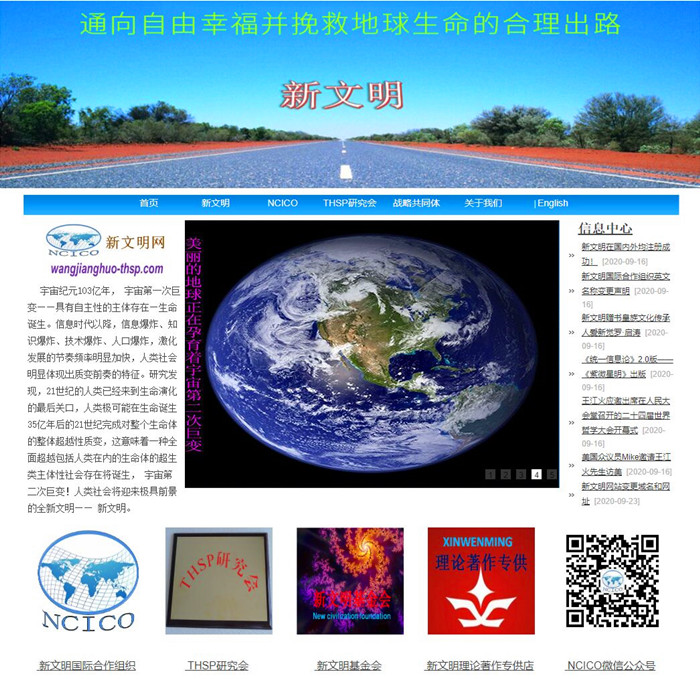 新文明网面向世界吐故纳新,扬弃并超越包括现代科技体系在内的人类以往五千年的旧文明,创建适应于新时代的包括人类终极事业和新文明先锋文化在内的新文明,是中国第一家专门面向宇宙、生命体、人类发展进行终极关怀的网站,由王江火先生于2011年2月创建的。