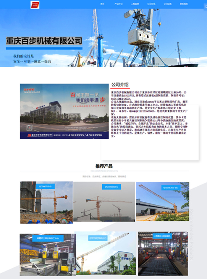 重庆百步机械有限公司位于重庆市江津区珞璜镇园区大道30号。公司注册资金1500万元,具有塔式起重机A级制造资质,制造许可证:TS2410M54-2023。公司占地面积54亩,现在已建成21680平方米大型钢结构厂房、拥有数控切割设备、片式数控标准节加工中心、焊接机器人等现代化的加工设备和半自动化生产线,是安全生产标准化三级企业(机械),证书号:渝AQBJXIII201600086;是塔式起重机的专业生产厂家。设有无损检测、理化分析室配备有先进检测控制的仪器,其中《塔机的运行小车轮共面控制系统》获得2015年中质协颁发的优等奖。