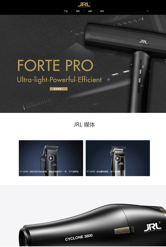 JRL品牌产品种类繁多,有高端电吹风机,智能电推剪,直发夹和卷发棒等发廊和美发学院专业用工具。该品牌的产品设计一直以革新和高品质为核心,现拥有30多个专利技术应用在产品上。