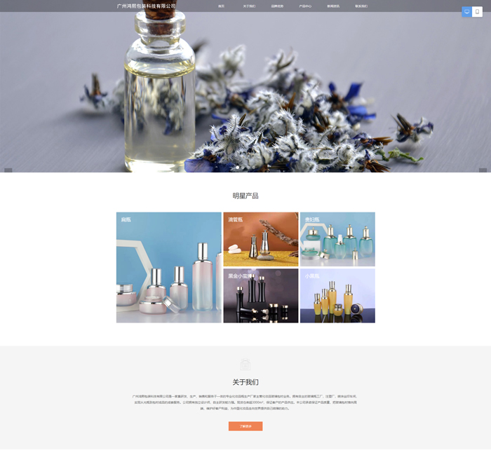 广州鸿熙包装科技有限公司是一家集研发、生产、销售和服务于一体的专业化妆品瓶生产厂家主营化妆品玻璃包材业务。拥有自主的玻璃瓶工厂,注塑厂,喷涂丝印车间,实现从光瓶到包材成品的成套服务。公司拥有独立设计师,自主研发能力强。现货仓库超3000m2,保证客户的产品供应。本公司承诺保证产品质量,把玻璃包材推向高端,维护好客户利益,为中国化妆品走向世界提供自己微薄的助力。