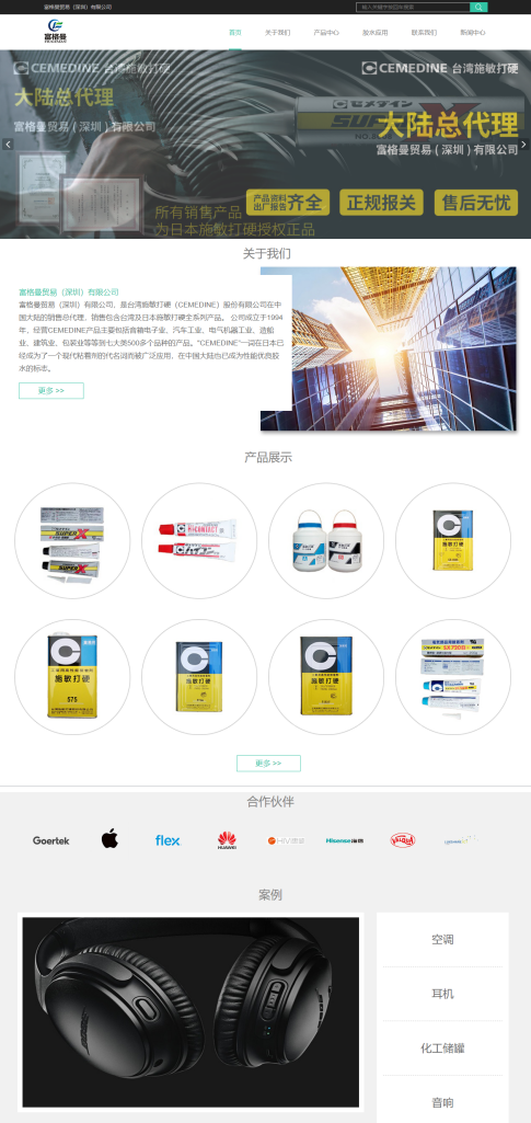 富格曼贸易(深圳)有限公司,是台湾施敏打硬(CEMEDINE)股份有限公司在中国大陆的销售总代理,销售包含台湾及日本施敏打硬全系列产品。 公司成立于1994年,经营CEMEDINE产品主要包括音箱电子业、汽车工业、电气机器工业、造船业、建筑业、包装业等等到七大类500多个品种的产品。"CEMEDINE”一词在日本已经成为了一个现代粘着剂的代名词而被广泛应用,在中国大陆也已成为性能优良胶水的标志。
