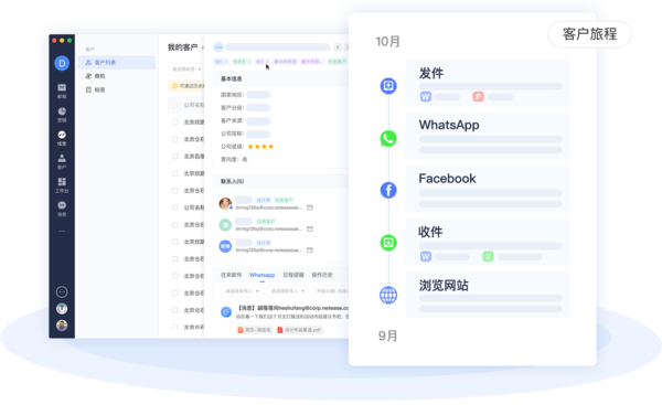 数据看板,包括营销数据、邮件数据、客户动态展示,可自由排版 |
