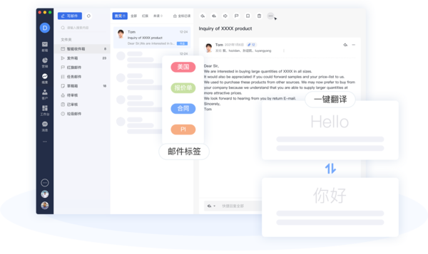| 包括邮箱、消息、日历、通讯录、云文档功能模块 | |
