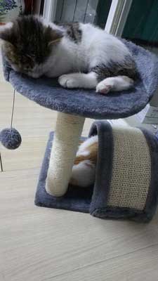 装好了之后挺牢固的,如果上面的麻绳能再缠厚实点就更好了,感觉就裹了一层,如果猫抓的多的话应该很快就会破了,打算过段时间自己买点麻绳再缠点