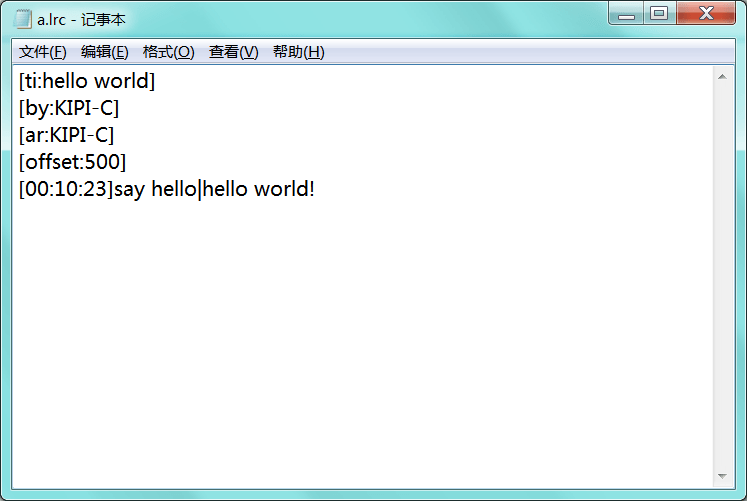 上面的是作为演示demo的a.lrc文件(记住要分行哦!!!)