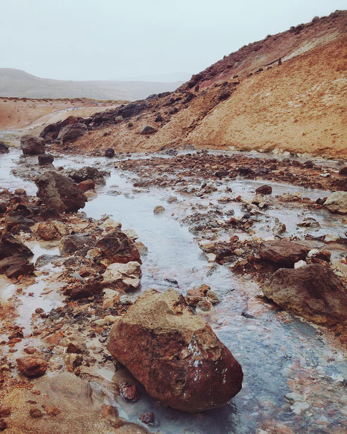 Just below the bridge a very remarkable sight is to be seen. For more than half a mile along the right bank of the river a series of cascades and waterfalls flow into it. The water issues from beneath the lava of which the steep bank is composed, and then flows down its side; it is a very striking proof of the great extent of some of the subterranean rivers. Just above the bridge there is a very fine fall in the Hvitá, known as Barnafoss; though fine, it cannot be compared with Gullfoss in grandeur, and the glory of this part of the river is the series of cascades on its right bank. The spot is supposed to have been named from the drowning of two children near the fall—Barnafoss, the children's waterfall; but the minister at Reykholt declared that the tale is not true, and that the name is more likely to have been corrupted from Bjarni, which is a man's name. It is worthy of note that the birch woods seem to flourish best in the decaying lava in the scoriaceous lava-fields; it also seems to do well in soil produced from liparite, for it grows high up on the east side of the liparite mountain, Tunga.