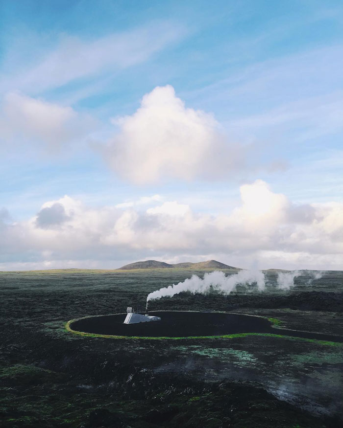 The strip is about fourteen miles wide at its narrowest part (not eight as shown on the existing maps), and extends north and south about twenty-five miles. Strytur is on the divide, or water-parting, between one system of rivers flowing north and another flowing south, and it stands on the highest part of this strip of land. The lava, as it issued from the volcano, flowed north and south down gentle declivities, and spread out east and west almost to the outlying ranges on the margins of the ice-fields. North it extends to just beyond Dufufell, and south almost to Lake Hvitarvatn.