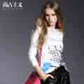 七格格OTHERMIX2015秋新款 网纱拼接弹力修身长袖一字领T恤