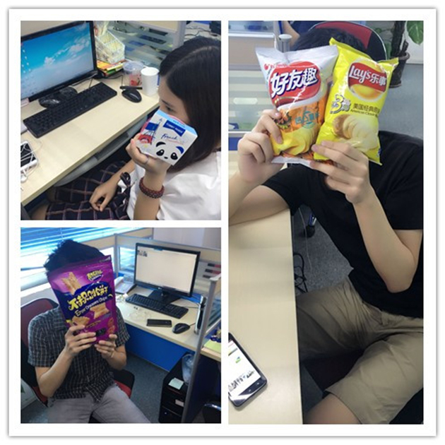 我们有各种各样的零食,公司还特意为每个女生都准备了一个可爱的果冻,大家纷纷秀出自己的零食来拍照,一些新员工还说第一次在公司过儿童节呢~!都开玩笑说在公司过的儿童节真的有点像是大龄儿童的聚会,其实我也是这样认为的,O(∩_∩)O哈哈~