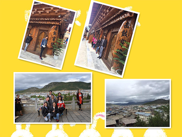 我们的第一站,是前往有“东方威尼斯之称”的———丽江,丽江的景色果然宏伟壮观,四只眼睛都看不过来,哈哈~游完丽江后我们接着到达拍摄雪山倒影的最佳点——黑龙潭,在那里我们疯狂的自拍,各种稀奇古怪的姿势,自然的美景让人舒适到仿佛回到了小时候(*^__^*)