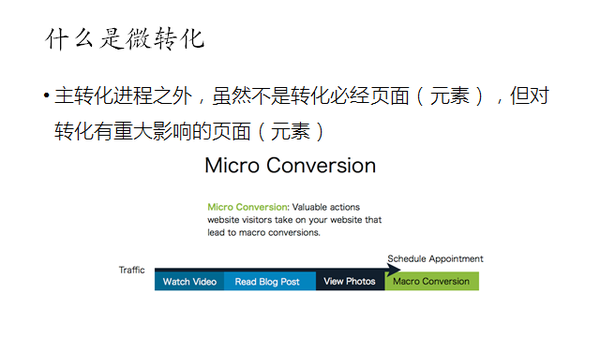 人人都懂转化漏斗,但不是所有人都关注微转化。但是你想指望一个转化漏斗不断提升转化率太困难了,而微转化却可以做到。转化漏斗解决的是转化过程中的大问题,但大问题总是有限的,这些问题搞定后,你还是需要对你的转化进行持续优化,这个时候必须要用到微转化。