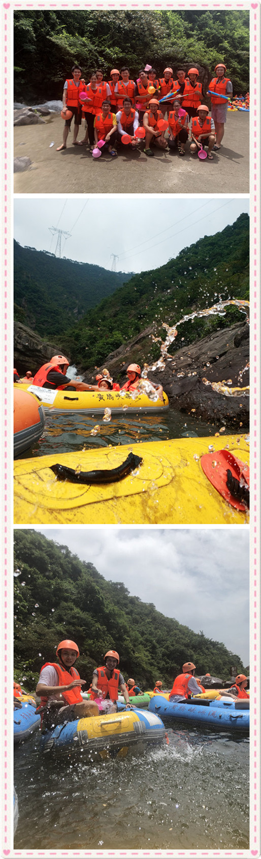 台风多发的天气里面,少不了雨水的陪伴,但是也不妨碍员工的热情,毕竟漂流就是会“湿身”的嘛。来到漂流起点,都急忙穿上装备,等待着坐上汽艇,进行一次被瀑布水的洗礼~来咯,冲啊...