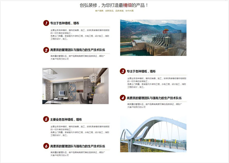 深圳市创弘装修工程有限公司主要业务各种墙纸,墙布的销售,施工,安装;承接墙纸墙布地板胶的一切外单的安装施工,免费上门测量。承接室内外装饰工程,水电工程,设计施工,消防工程的设计,施工。
