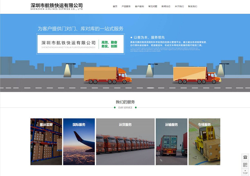 非常感谢深圳市航铁快运有限公司对合优公司的信任和支持,把企业的官网网站制作交给合优网站建设公司,合优不负使命,发挥网站制作方面的优势,用“诚信,责任,团队,敬业”的服务宗旨和态度完成这次的合作。