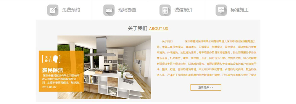 深圳市鑫民保洁有限公司是较早进入深圳市场的保洁服务型公司,主要从事开荒保洁、玻璃清洗、日常保洁、别墅保洁、展会保洁、酒店地毯沙发窗帘清洗、外墙清洗、地毯清洗保养,等专项服务及日常托管服务,我公司既服务于各类商业企业,机关单位,建筑、装饰施工企业,同时也为千家万户提供优质、贴心的服务!新颖保洁十五年保洁经验、以优质的服务、合理的配置和专业清洁设备为客户创造着干净、整洁、舒适、愉快的清洁环境。本公司以科学的管理、合理的时间安排、敬业的保洁人员、严谨的工作程序和高标准的验收取得客户满意,已先后为多家单位提供了保洁服务,现和数十家单位建立了长期的合作伙伴关系。