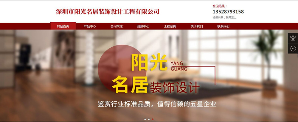 深圳市阳光名居装饰设计工程有限公司以顾客为中心,以服务为特色;以专业价值追求卓越,创造行业品牌典范,实现价值最大化,回报社会,诚信奉献为企业使命;在深圳逐渐树立起公司良好品牌。
