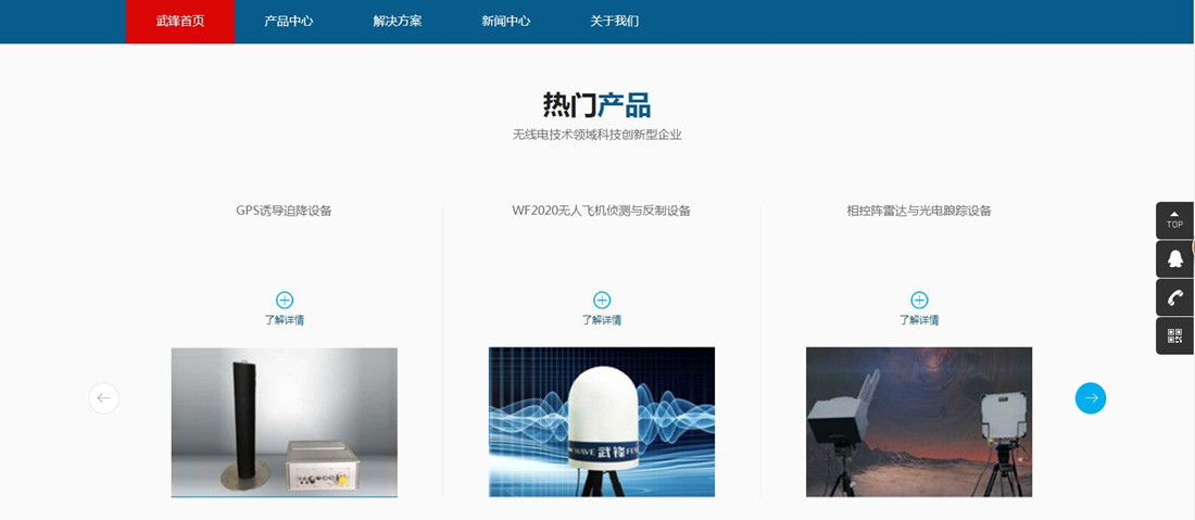 公司技术实力雄厚,坚定奉行创新为基、诚信为本,服务社会的企业宗2018年9月30日,首款基于智慧无线电技术的使测与反制一体的无人飞机侦防系统研发成功,2018年10月16日该产品项目获得2018中国创新创业大赛军民融合专业赛优胜奖”,2018年11月23日产品经中华人民共和国公安部安全与警用电子产品检测中心检测合格,产品在多个公安部门得到了实战应用,2019年7月2日武锋技术队战胜众多国内顶级研究院所荣获“无形截击-2019”挑战赛定点迫降第一名。