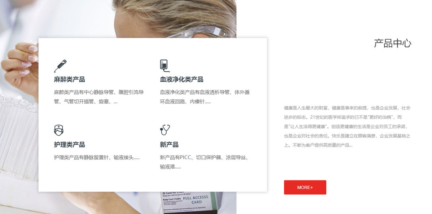 公司拥有国内先进的医用耗材生产工艺和技术,完善的质量保证体系,现代化的管理手段以及高品质的产品和优质的服务。从公司创立之初的中心静脉导管和血液透析导管起步,截止目前,公司已经形成静脉输液耗材、血液净化耗材、护创敷料耗材三大领域,并依托三大领域的技术优势和丰富的产品储备,成为上述领域内的一次性使用医用耗材综合解决方案提供商。