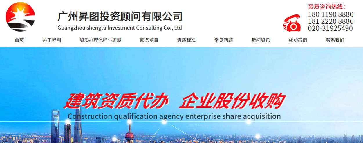 广州昇图投资顾问有限公司地处白云区,强大的背景实力,高效专业的团队精神,服务至上的企业意识,是广东省同行业的领军者。主要代理建筑企业资质(施工总承包、专业承包、监理、造价、劳务分包及设计类)等各类申报疑难项目的代理申报,全标强调服务咨询的实效,只做确信能为客户创造价值的服务,并以高效的服务水准,解决客户所遇到的困惑,以改善企业竞争力为己任,协助建筑行业的企业客户获得资质证书为宗旨。