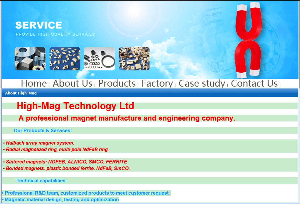 advertising, toys, etc.High-Mag exports magnets to more than 20countries like Germany, Japan, USA, etc. and win good reputation among