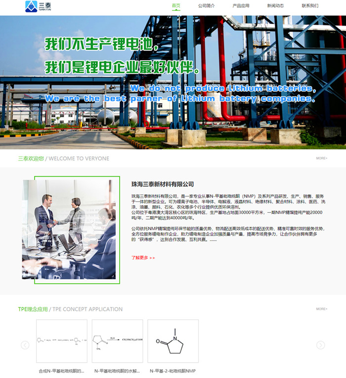 珠海三泰新材料有限公司,是一家专业从事N-甲基吡咯烷酮(NMP)及系列产品研发、生产、销售、服务于一体的新型企业。可为锂离子电池、半导体、电解液、液晶材料、绝缘材料、聚合材料、涂料、医药、洗涤、油墨、颜料、石化、农化等多个行业提供优质环保溶剂。