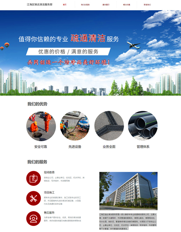 江海区锋达清洁服务部是一家从事多年专业疏通清洁服务公司,主要从事:疏通下水道厕所、市政管道疏通清洗、清理化粪池、清理隔油池、污水处理、抽淤泥、管道维修清洗油烟机等服务。长期致力于各物业公司,企事业单位,住宅区,机关学校,宾馆饭店,写字楼宇,市政管网等下水管道,排污管道的疏通清洁。