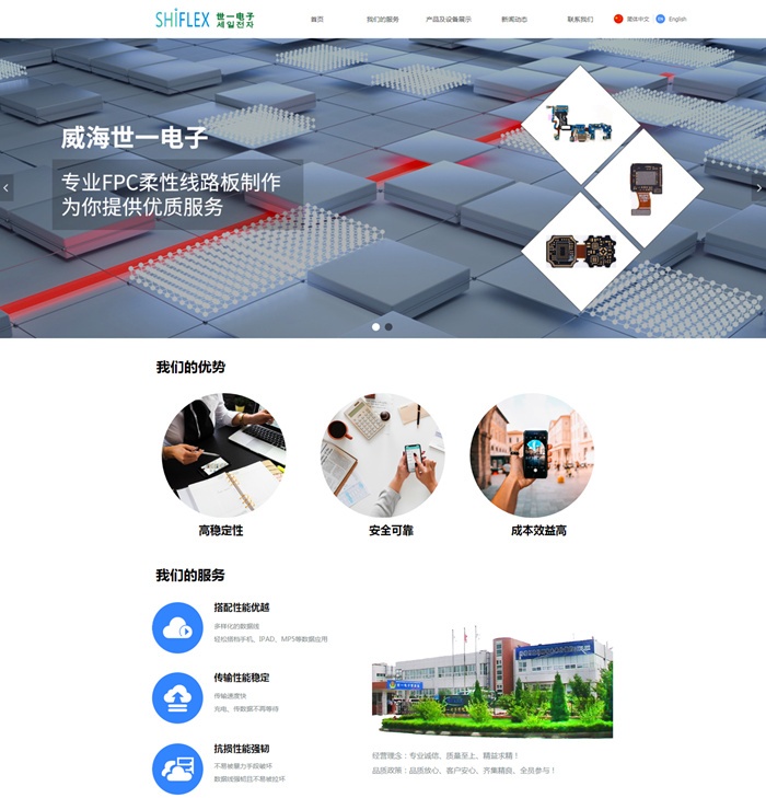 威海世一电子有限公司系光洋股份控股企业,成立于2001年4月,座落于山东威海经济技术开发区出口加工区中心位置,占地面积52,549余平方米,专业从事软性线路板(Flexible Printed Circuit Board)及电子元器件的设计与加工,产品适用于手机、电脑VCD、DVD、自动照相机等,其特点超薄、超轻、精密度高、弯曲性能强,属高新科技技术产品。主要出口日本、韩国、东南亚、欧洲等国家,分别与2003年、2006年先后通过了ISO9001质量体系认证和ISO14001环境质量体系认证。