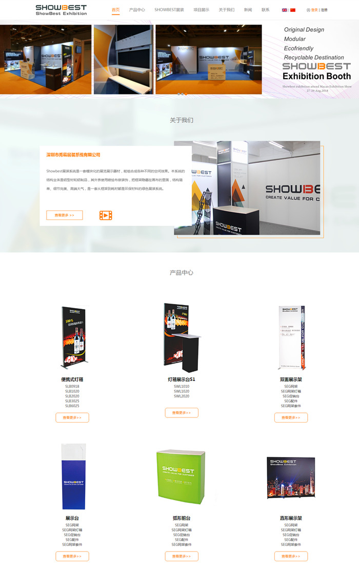 Showbest展装系统是一套模块化的展览展示器材,能组合成各种不同的空间效果。本系统的结构主体是铝型材和铝制品,其外表使用喷绘布做装饰,把框架隐藏在画布的里面,结构简单、细节完美、高端大气,是一套从框架到耗材都是环保材料的绿色展装系统。