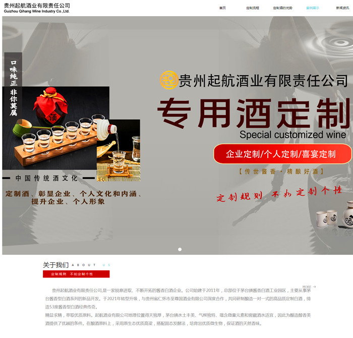 贵州起航酒业有限责任公司,是一家锐意进取、不断开拓的酱香白酒企业。公司始建于2011年,总部位于茅台镇酱香白酒工业园区,主要从事茅台酱香型白酒系列的新品开发。于2021年转型升级,与贵州省仁怀市至尊国酒业有限公司深度合作,共同研制酿造一对一式的高品质定制白酒,缔造53度酱香型白酒经典传奇。