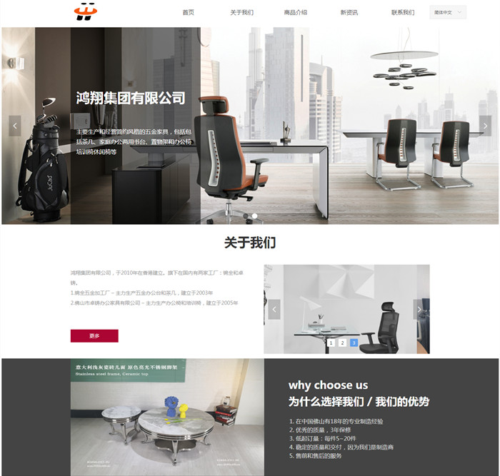 鸿翔集团有限公司,于2010年在香港建立。旗下在国内有两家工厂:锦全和卓铸。锦全五金加工厂 – 主力生产五金办公台和茶几,建立于2003年。佛山市卓铸办公家具有限公司 – 主力生产办公椅和培训椅,建立于2005年。