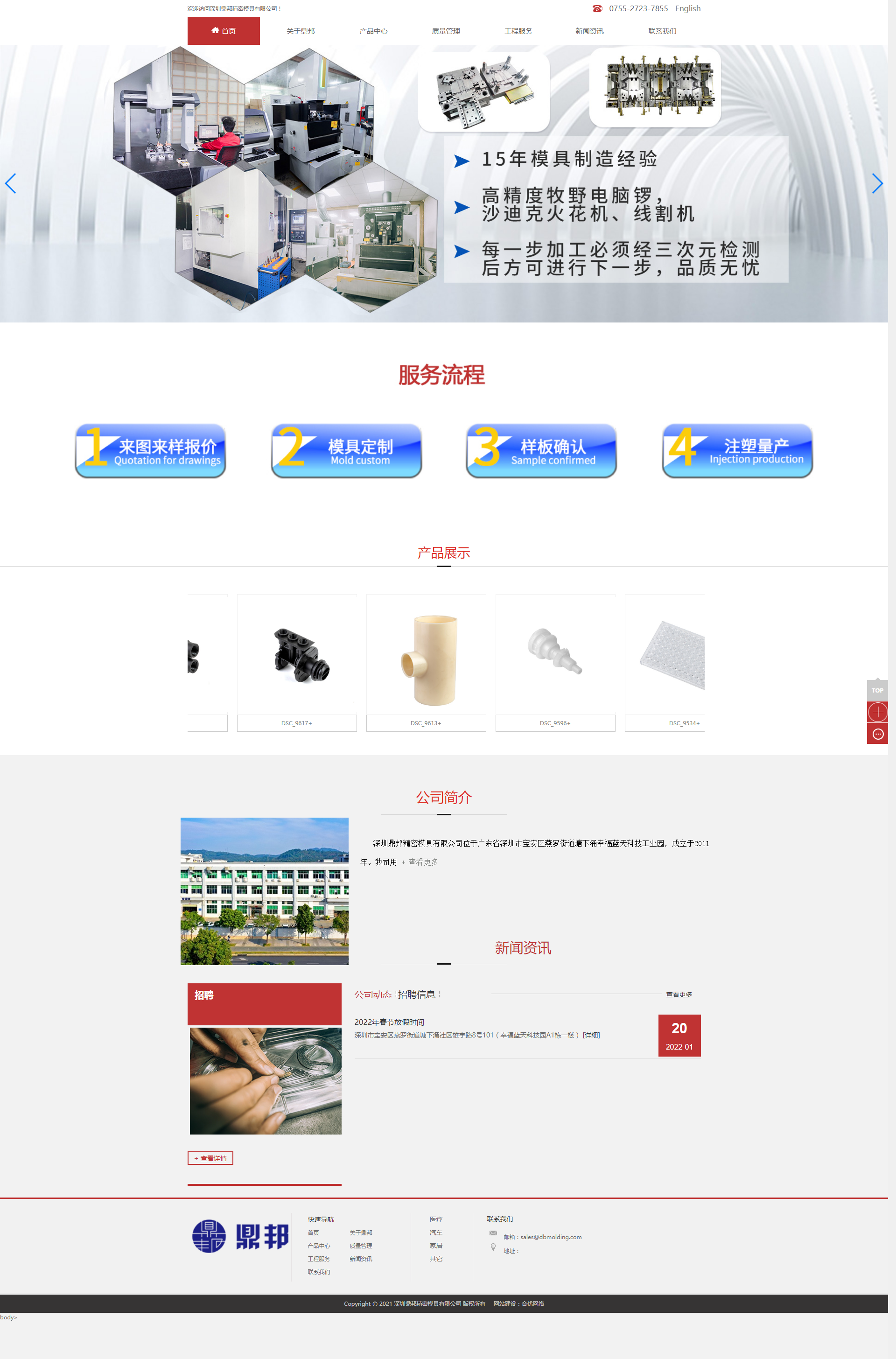 深圳鼎邦精密模具有限公司位于广东省深圳市宝安区燕罗街道塘下涌幸福蓝天科技工业园,成立于2011年。我司用UG和CAD软件进行成套模具的设计制造,采用半自动化的加工系统专注于各种高难度和复杂精密模具。本厂配置数控机床,电火花机、线切割、三座标测量机、合模机、注塑机等30多台设备,厂房面积2000平方米,固定资产500多万元,年生产能力超1000万元以上。