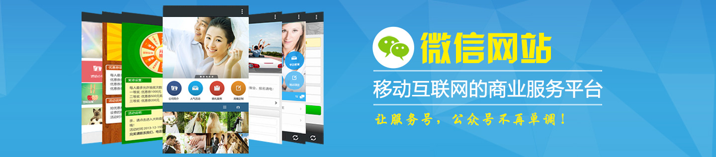 微信网站,可以快速搭建手机网站并生成APP,帮助企业建设企业移动门户和移动基础应用平台,可以和企业微信公众号整合提供互动应用服务。企业可以在微站的基础上扩展或加载诸如微商城、微调查、微团购、客户管理等一系列应用,并可以集成微信、微博、短信、在线客服、在线商城、企业CRM系统等多平台接口,企业通过微站平台可以管理各类移动应用,从而形成企业移动互联网的统一数据入口。